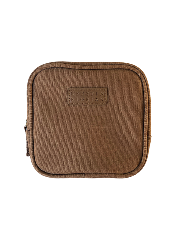 Necessär i canvas med Kerstin Florian-logo. Fodret har praktiska fack som passar perfekt för produkter i resestorlek.